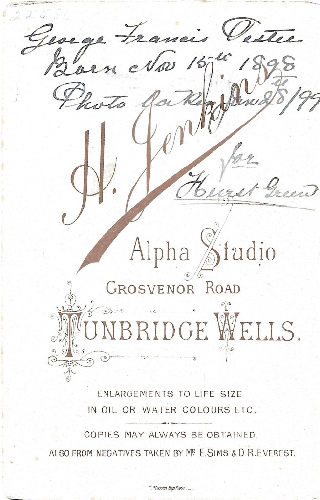 This one I’ve chosen is a gem as it states his full name on the back: George Francis Tester Born Nov 15 1898. Photo taken Jan 28 1899.
