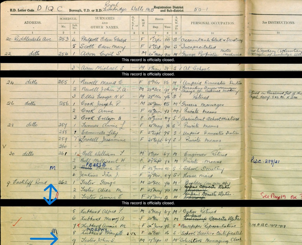 The youngest child was also a son John Stanley who was born on 17 April 1911, John married Annie E Adams on 13 June 1934 in Tonbridge, Kent. It looks like they had one child. In 1939 John was a Solicitors Managing Clerk and the couple lived with George and Alice, John’s parents at 9 Eastcliff Rd, Tunbridge Wells, still there, see below, via Google Street, a large corner house.