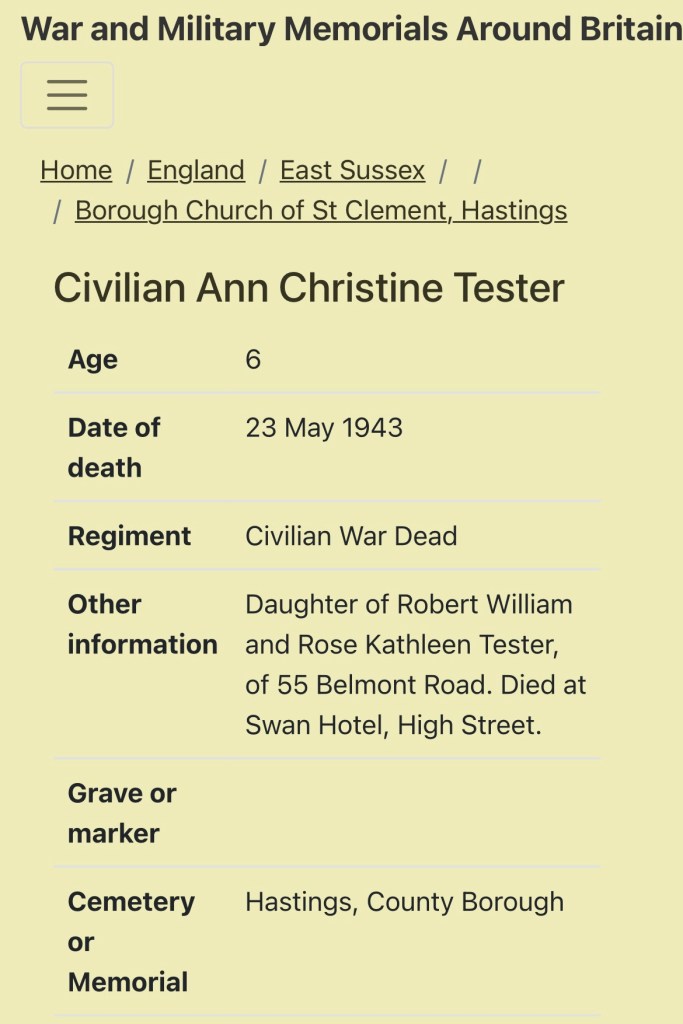 I started to follow all the different links associated with the bombing in Hastings during WW2 to build up a story of what had happened on the day Ann died.