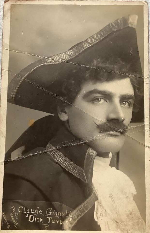 After I had shared the Alf E Kefford postcard on social media, I had a message from Catherine Green, a follower on my Facebook page, and she kindly shared this super old postcard from her own personal collection, of Claude Ginnett as Dick Turpin.