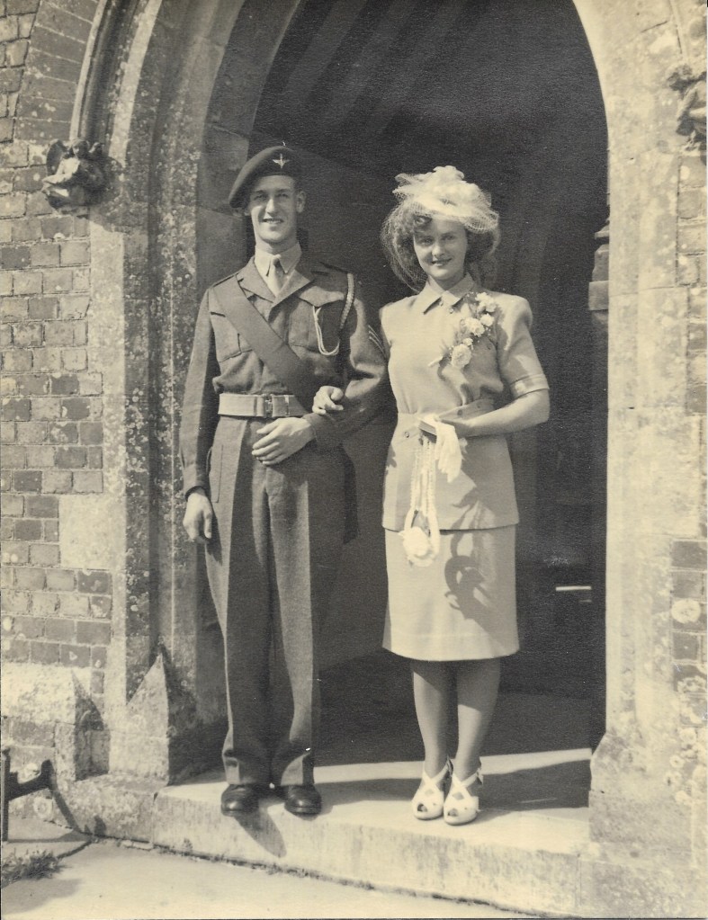 Percival Sinclair Drewcock was born on 7 October 1926 in Birmingham, Warwickshire. His parents were William and Annie. Percival was known as Peter, according to a family tree on Ancestry. The first wedding photo was taken on Saturday, 23 August 1947, at All Saints Church, Charlton near Salisbury, Wiltshire, when he married Mary Elizabeth Griffey, known as Betty. She had been born on 24 June 1926 in Battle, Sussex. Her parents were John and Mary. Mary or Betty, as she was known, had a sister and two brothers.