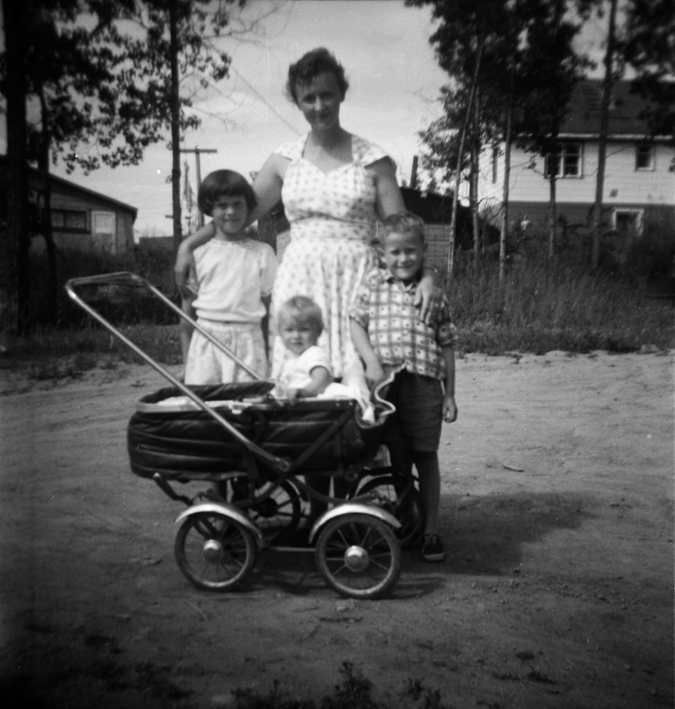 Neil also found this photo taken in Canada, online of Betty Drewcock with Monica(b 1951), Peter(b 1953) and Rosemary (b 1959 Canada). “It looks like the Drewcocks went to Canada in 1957“.