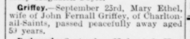 The Griffey family of Mum and children were living at a house called Bell Vue in Lower Road, Charlton, in 1939, according to the 1939 register, so very handy for the Church!