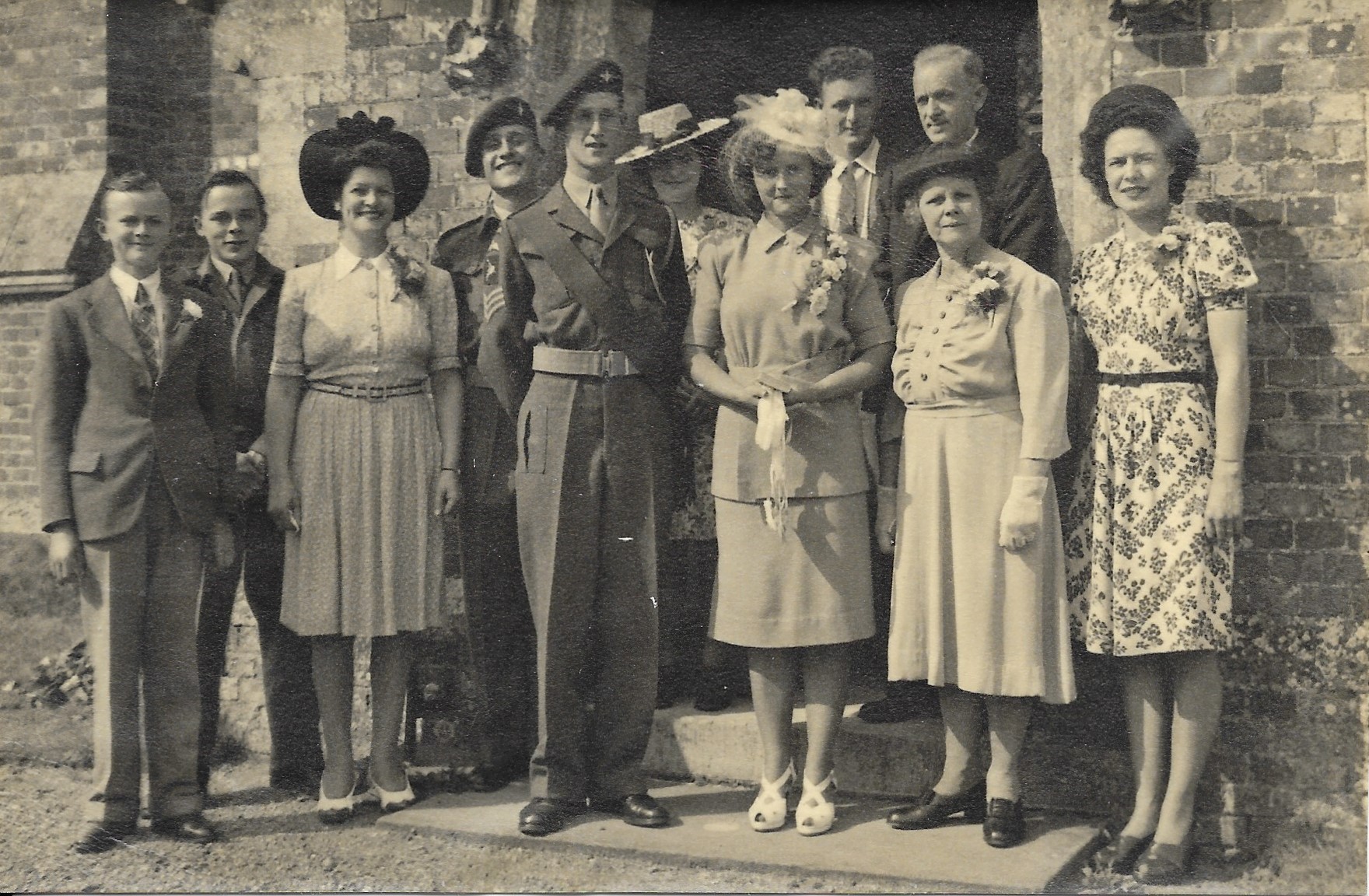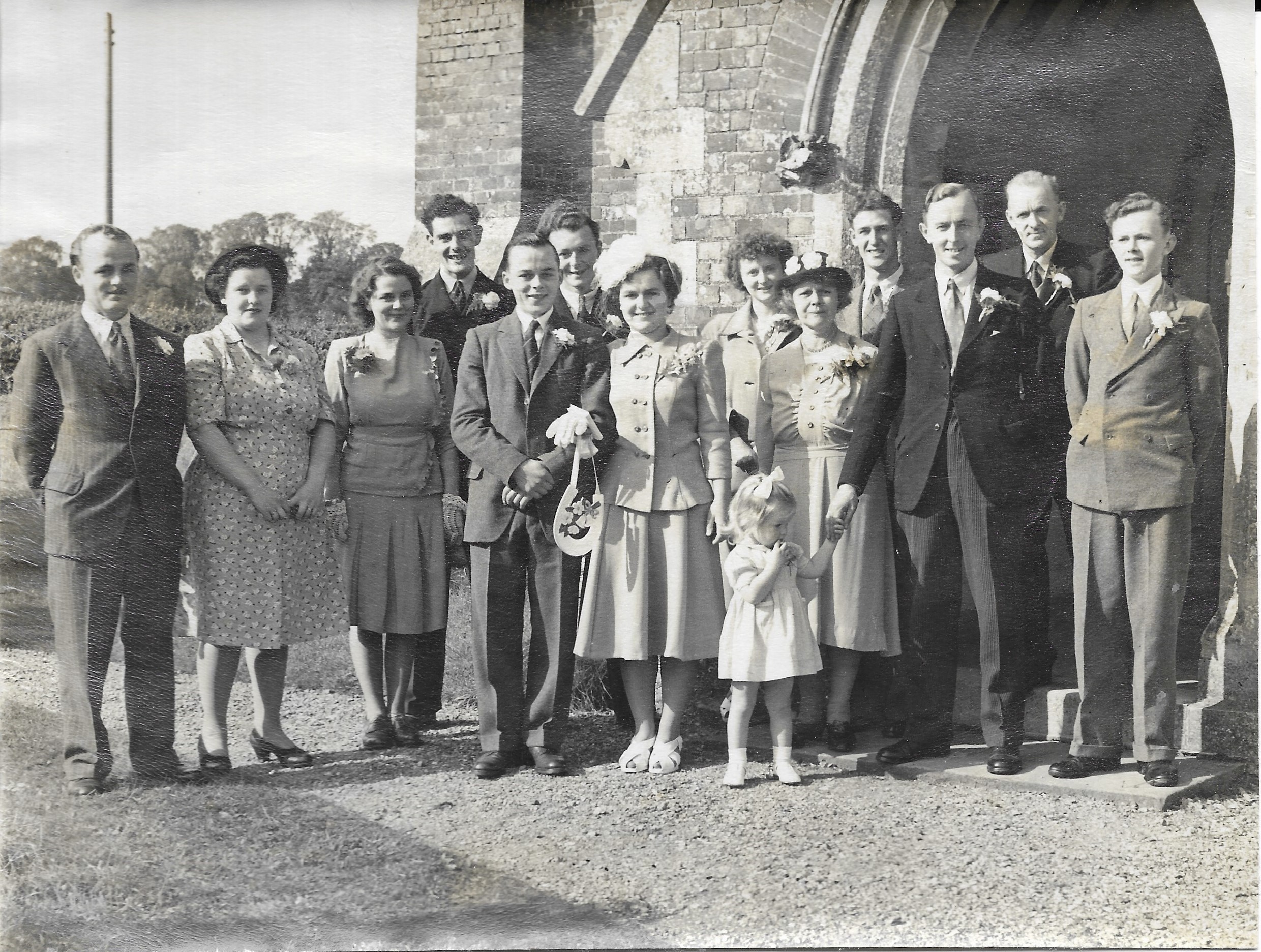 Percival Sinclair Drewcock was born on 7 October 1926 in Birmingham, Warwickshire. His parents were William and Annie. Percival was known as Peter, according to a family tree on Ancestry. The first wedding photo was taken on Saturday, 23 August 1947, at All Saints Church, Charlton near Salisbury, Wiltshire, when he married Mary Elizabeth Griffey, known as Betty. She had been born on 24 June 1926 in Battle, Sussex. Her parents were John and Mary. Mary or Betty, as she was known, had a sister and two brothers.