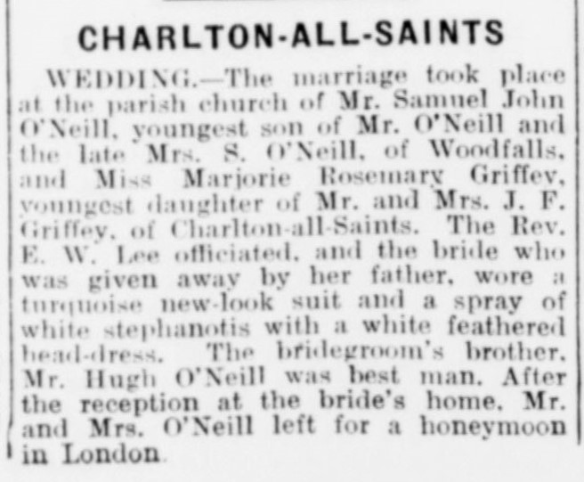 The report of Marjorie’s wedding in the Salisbury Times in 1948.