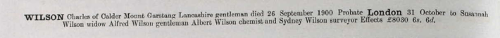 We have some great information on this probate record. Alfred Wilson, a gentleman, Albert Wilson, a Chemist and Sydney Wilson was a Surveyor.