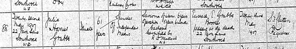 Back when I first started researching more about Julia at the beginning of August, I realised that although I found her death record on FreeBMD, I wasn’t able to get a digital copy of her death certificate from the GRO, as they didn’t have it listed among their records. So I filled in an error form on their website, and I was pleased to see that this last week it has been added to their records, and I can now see why she died at the age of 61.