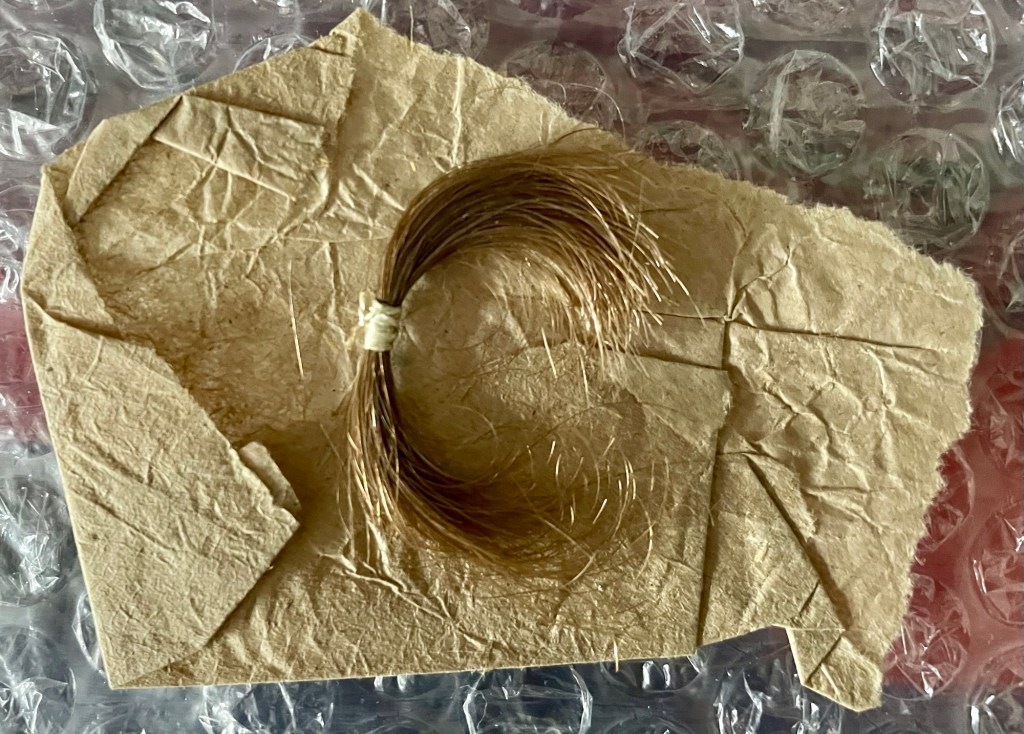 Is it Julia’s hair? The Victorians sometimes kept their own hair in personal items, but more often from loved ones, as keepsakes, so we can’t be sure.