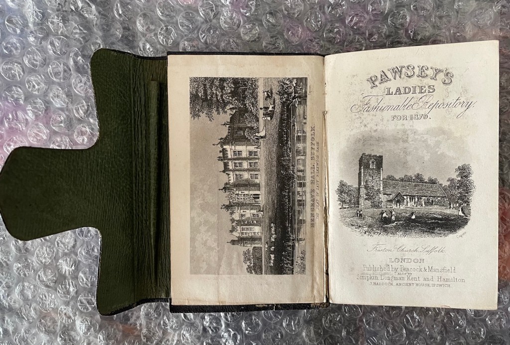 Pawsey’s Ladies’ Diary was actually called Pawsey’s Ladies Fashionable Repository. It was an annual publication, a kind of illustrated repository of arts, literature, commerce, manufactures, fashions, and politics, that ran under this name from approximately 1837 to 1905. It originated as the “Ladies’ Fashionable Repository” (c. 1809–1829), then continued as “Raw’s Ladies Fashionable Repository” (1829–1834) before becoming Pawsey’s. The publication format was a hardbound annual, often produced by publishers like Longman & Co. and Suttaby & Co. in London, and sold locally by F. Pawsey in Ipswich.