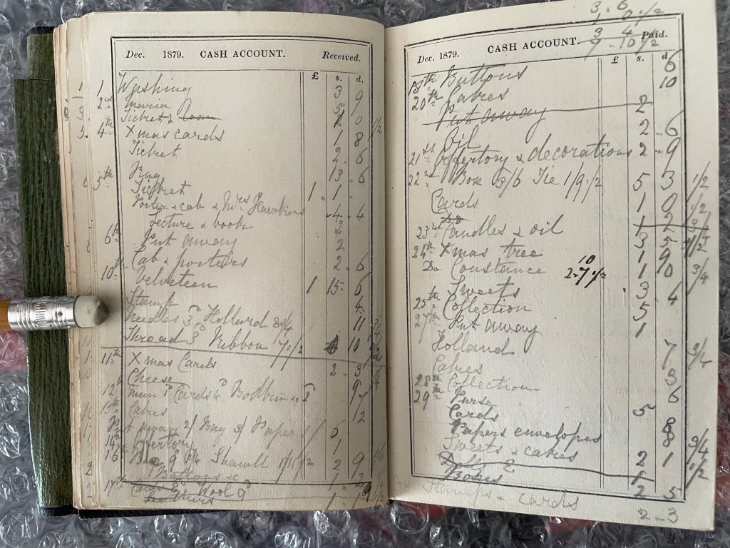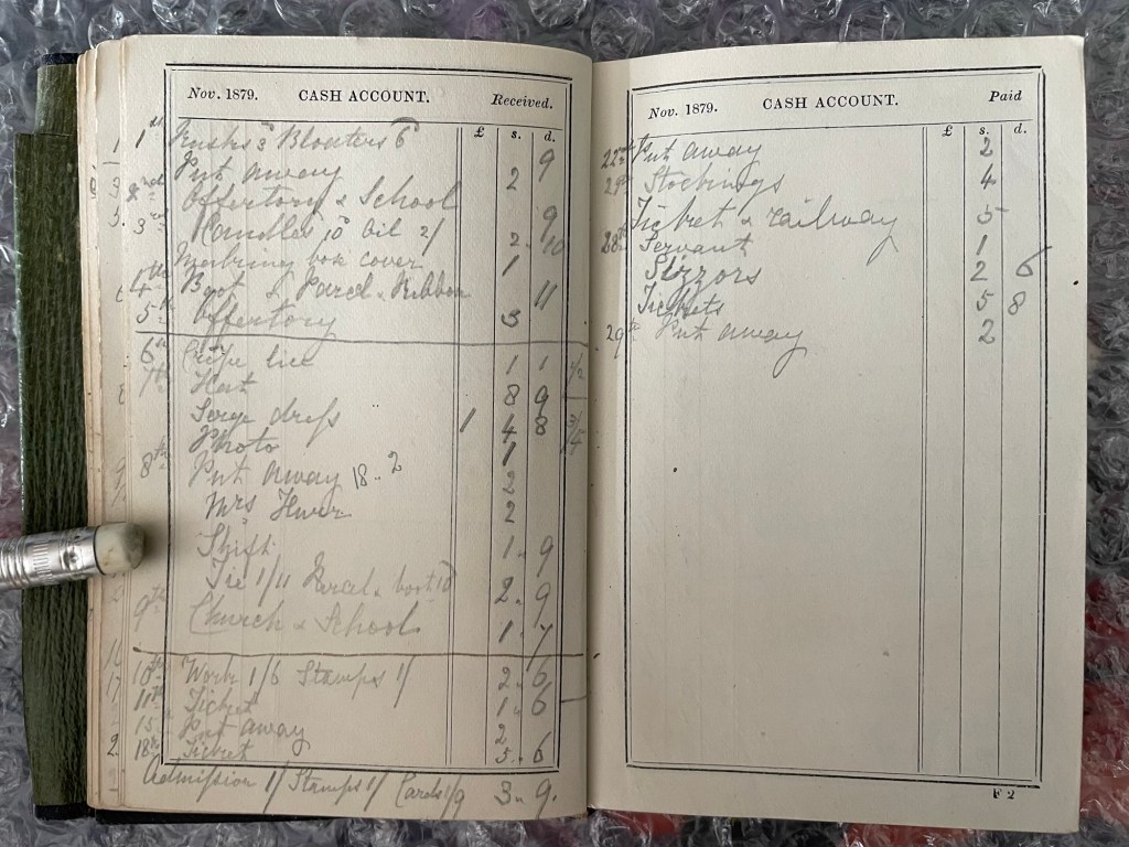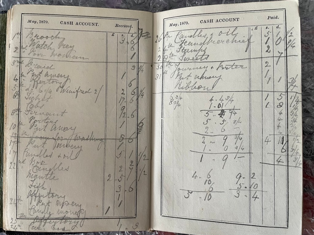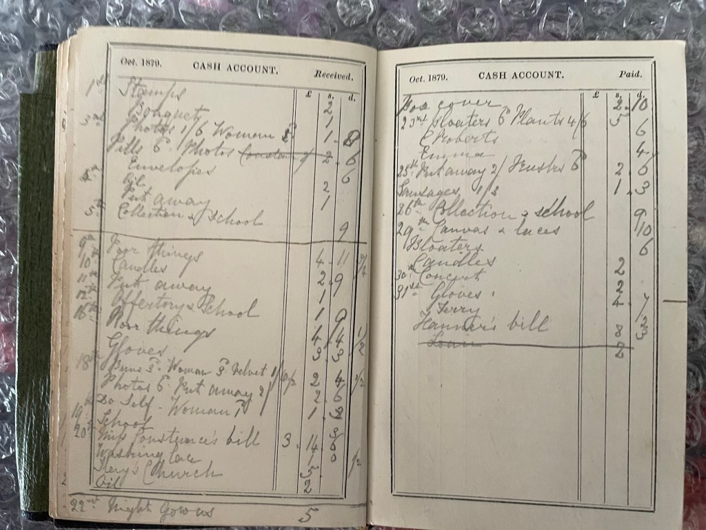 Reading her Diary entries, you would think that she led a fairly boring life compared to a young woman in her 30s today, but reading her expenses we can see that she certainly kept herself busy with various activities.