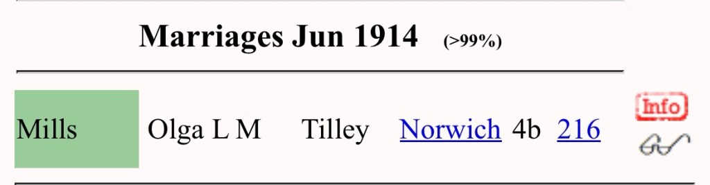 I searched first on FreeBMD for a marriage of Olga Mills in 1914, and there was just one.