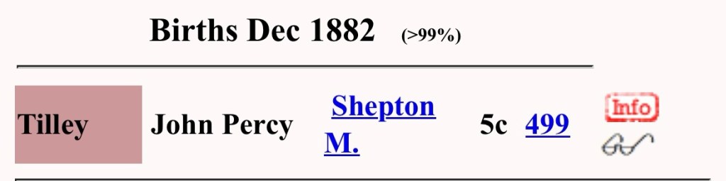 Next, I did a birth search for John P Tilley for the years 1880-1890, and again, luck was with me.