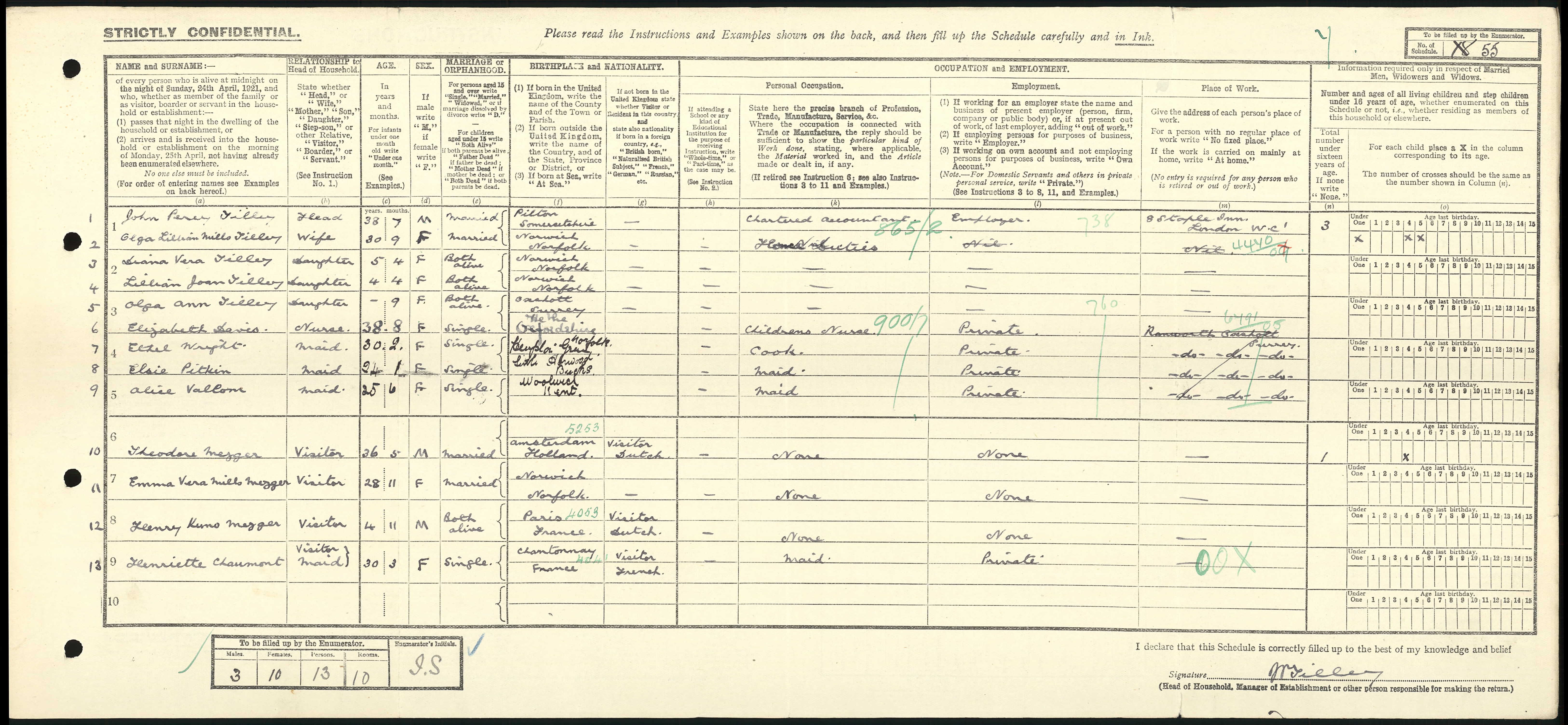I currently have access to Ancestry and Find My Past, so I can show you information about Olga and John, along with their family, staff, and visitors from the 1921 census, which took place on June 19, 1921. This census is invaluable because it provides insight into where people were and what they were doing shortly after World War I had ended.
