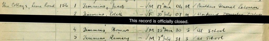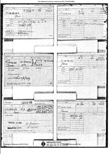 Another Free resource is The National Archives. They have many digitised records, including those related to World War I and II, military records, and some naval records, which are available for free online viewing if you create a free account. Jacob Timmins‘ record is middle left on this sheet below.