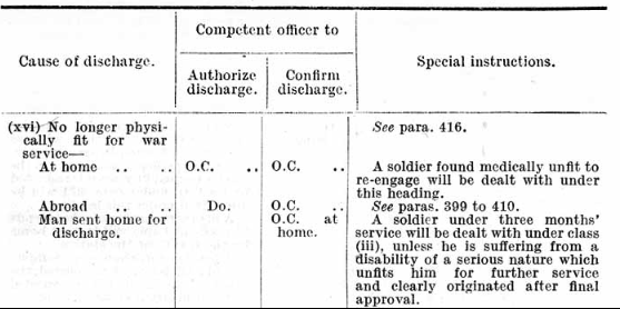 It’s a matter of piecing together the clues. This is his war medal card record above, and as you can see, his Cause of Discharge was 392 XVI KR. The XVI relates to being ‘No longer physically fit for war service‘ The Military Researcher website by Forrest Anderson is excellent for all sorts of Free Military information, link here: Cause of Discharge. Military researcher.