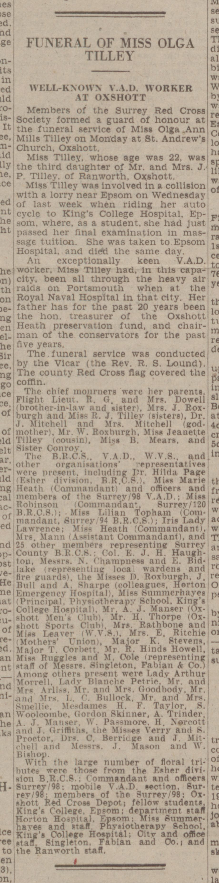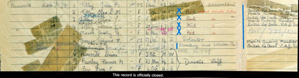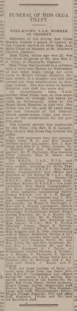 After reading the newspaper article about young Olga’s death, I checked the 1939 register and found that our mother, the bride, Olga and young Olga’s two sisters were also working for the Red Cross VADs.