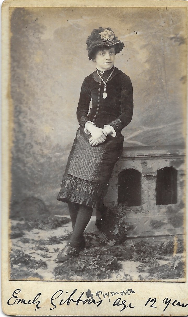 Emily E Gibbons was born on June 28, 1870, in Plymouth, Devon. She spent her earliest days in St Andrew, Plymouth, as noted in the 1871 census. Her childhood home soon grew busy with her siblings: William John, Rose, and the later arrival of Sydney Charles.