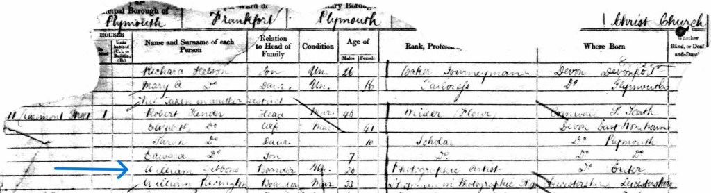 William as a Boarder, occupation Photographic Artist, 1861 census.