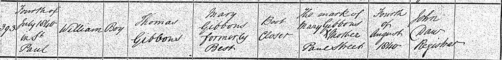 William Gibbons was born on 4 July 1840 in the bustling cathedral city of Exeter, Devon, the third child of Thomas Gibbons, a Shoemaker/Boot Closer, and Mary Ann Best. He grew up in a lively household alongside his five siblings, Mary, Thomas, Sarah, John, and George.