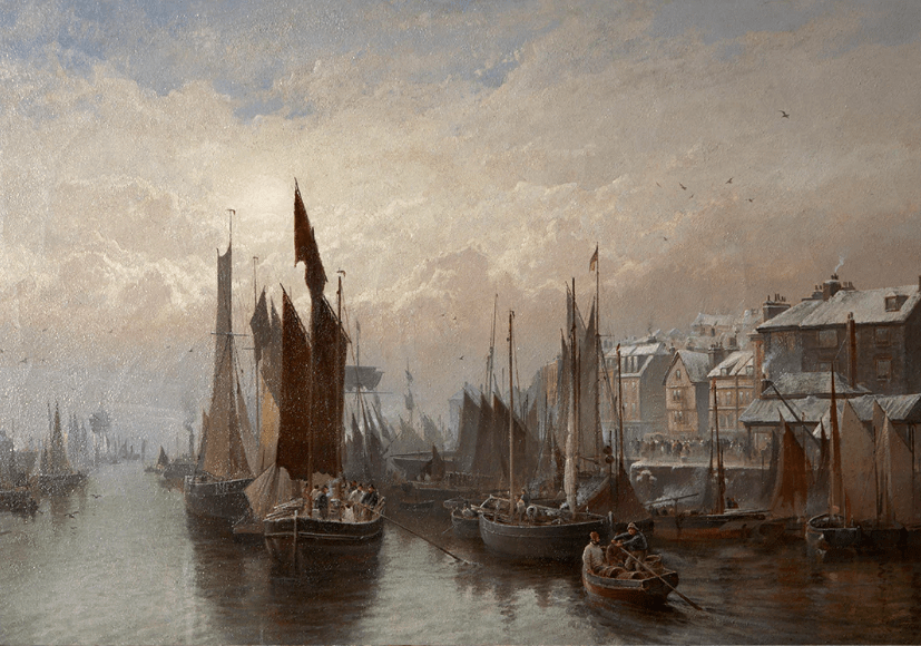 Sutton Pool and the Barbican in Winter, dated 1881.