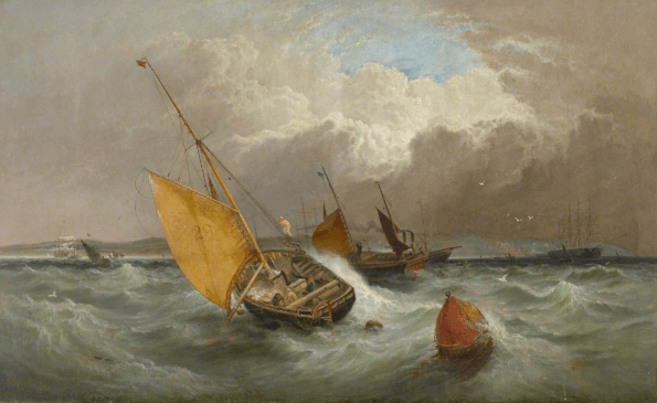One stormy November, word spread like wildfire through the fishing community: the Seven Sisters had gone down hard. William arrived at the shore, battling the wind, and began to sketch the tragic scene. He worked feverishly, the salt spray stinging his eyes, translating the despair onto his canvas. The resulting painting, “Wreck of the ‘Seven Sisters’, in Plymouth Sound”, became one of his most powerful works, capturing the brutal force of the storm.