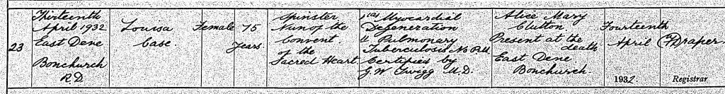 Louisa died on 13 April 1932 at the age of 76. I found that she died on the Isle of Wight, so I downloaded her digital death certificate to see where exactly she died. It was at East Dean, Bonchurch, Isle of Wight.