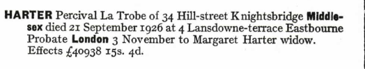 Maggie’s husband, Percival La Trobe Harter, was born on 25 December 1854 in Cheetham, Lancashire, the son of Mary and James.