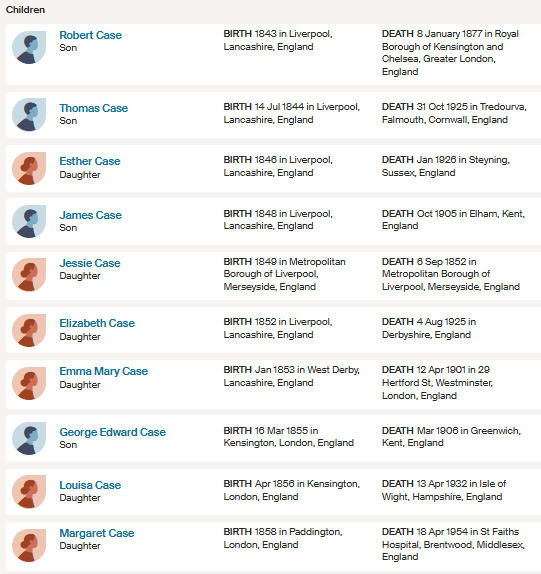 Louisa Case was born in April 1856, registered in Kensington, London. The ninth child of Robert Case and his wife, Esther. Baptised on 24 June 1856 at Saint Marylebone, Marylebone Road, Westminster.