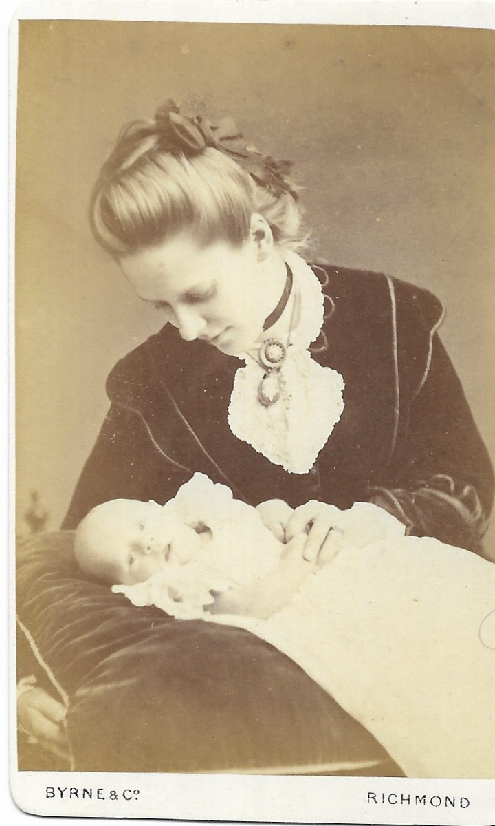 The last photo was taken in the early 1880s and is, I believe, Katherine Pauline Julius; it says on the back, ‘Mrs E L Fenn & infant’. During Victorian times, married women were known by their husband’s initial and name. So, after researching the Fenn family and adding the wider family, it’s the only Mr E.L.Fenn that I have found and it also matches perfectly with the other family photos in this little collection.