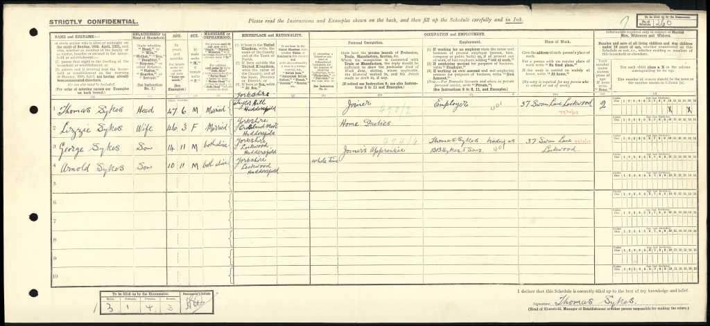 The 1841 Census (the first detailed census) shows many Sykes households clustered in Huddersfield and nearby townships.