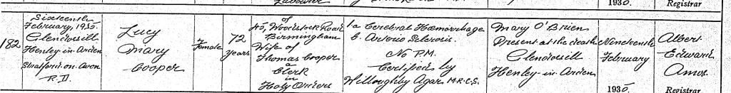 Lucy died on 16 February 1935 in Stratford-upon-Avon, aged 72. At the time, Thomas was living in Birmingham, though his lifelong ties to Westmorland remained strong.