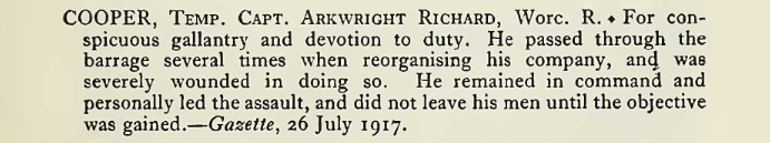 Then lastly, Arkwright Richard Cooper was born on 10 August 1895 in Kendal, Westmorland, the youngest child of the Reverend Thomas Cooper and Lucy Mary Elliot.