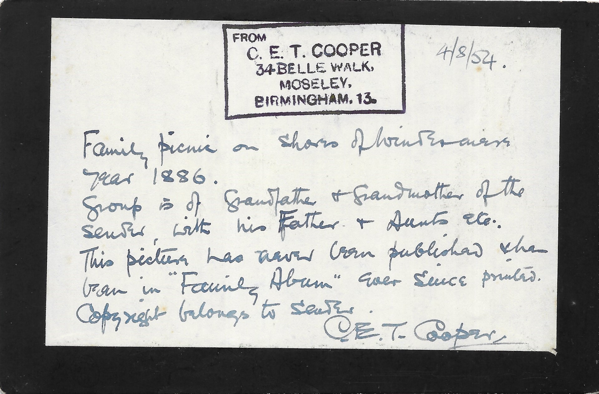 Copyright belongs to sender. C.E.T. Cooper”.