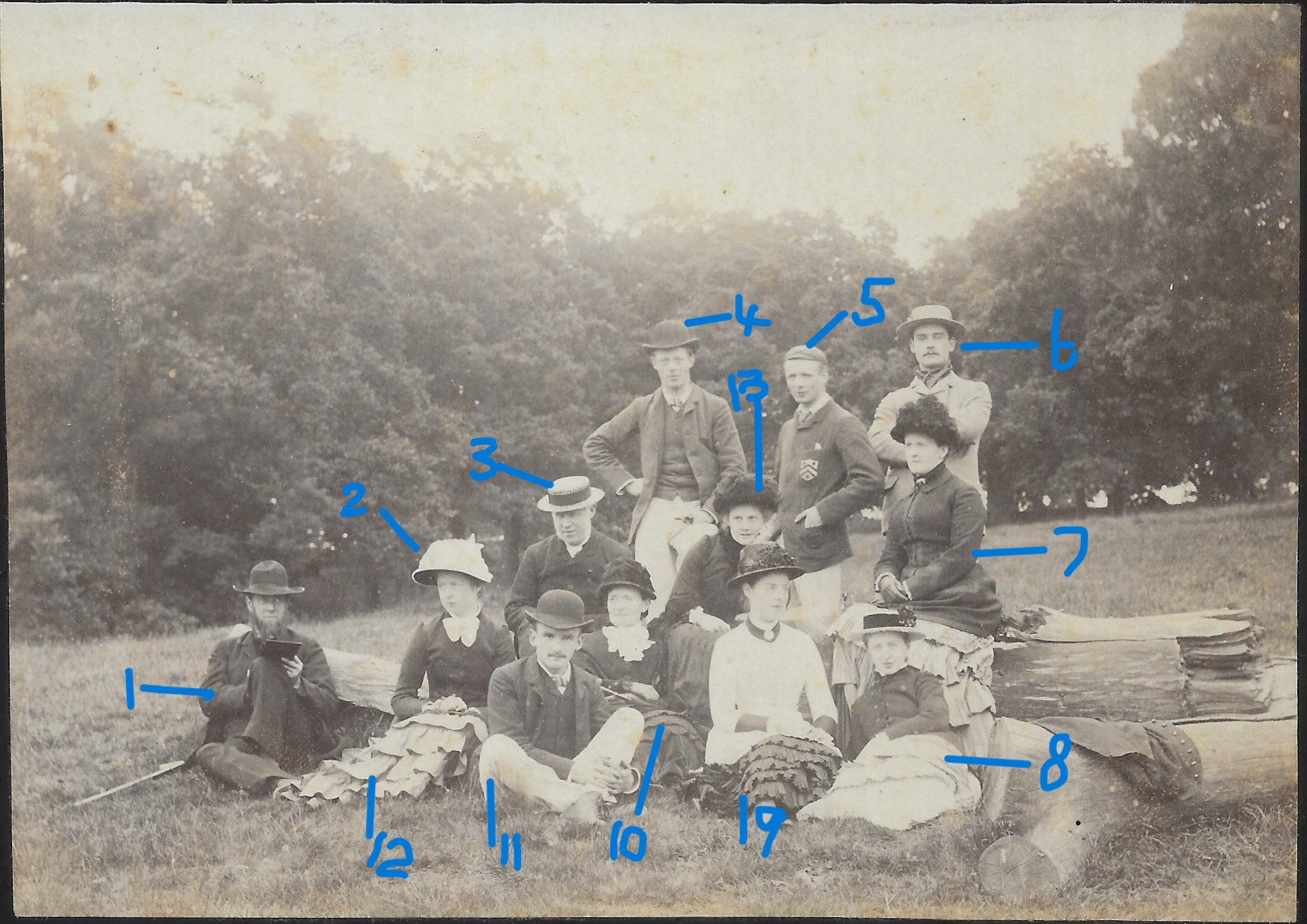 I love Victorian era group photos, especially ones like this, when they’d all met up to have a picnic, and the amateur photographer of the family captures that moment in time when they are all together. They could never have imagined that almost 140 years later, I would be sharing this moment with you.