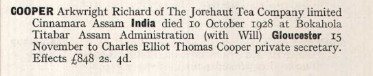 In 1928, at the age of 33, he died in Bokahola, Titabar, Assam, India, while working for the Jorehaut Tea Company, a long way from the landscapes of Westmorland where he had been born. News of his death returned to England, and his affairs were settled later that year in Gloucester, closing the story of a life that had spanned continents but was, in years, all too brief.