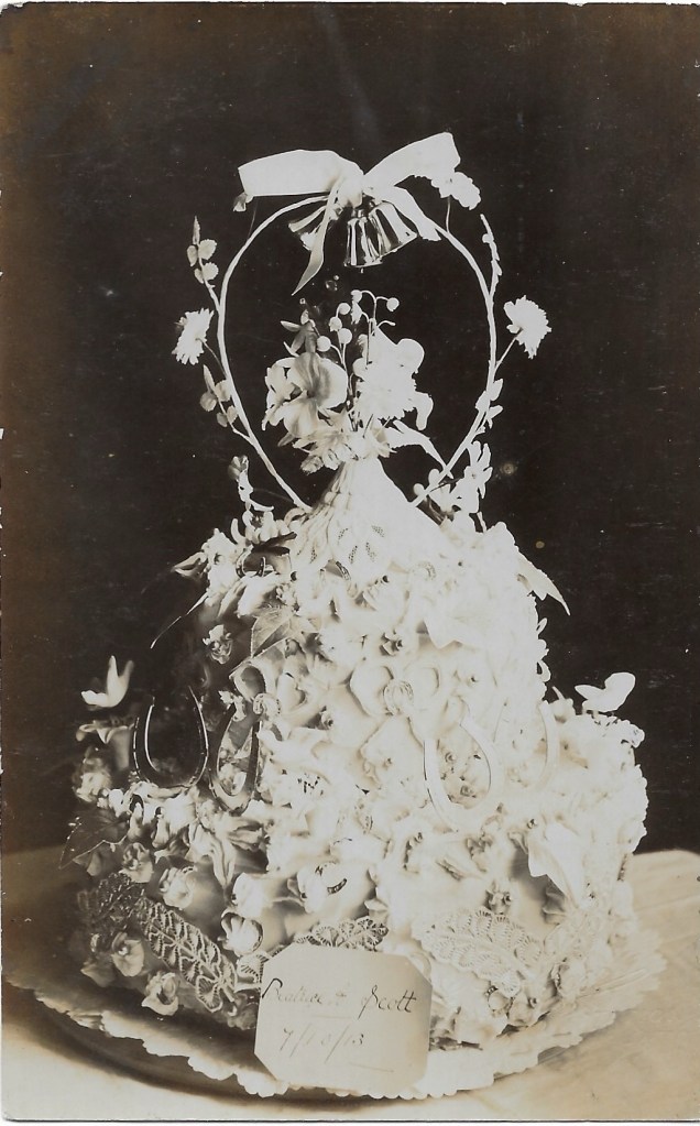 This is just one old postcard photo I bought at the recent Festival of Cards, just because I loved the cake. It had a name label on the cake with a date, so I was hopeful I might be able to identify whose cake it had been and learn more about her.
