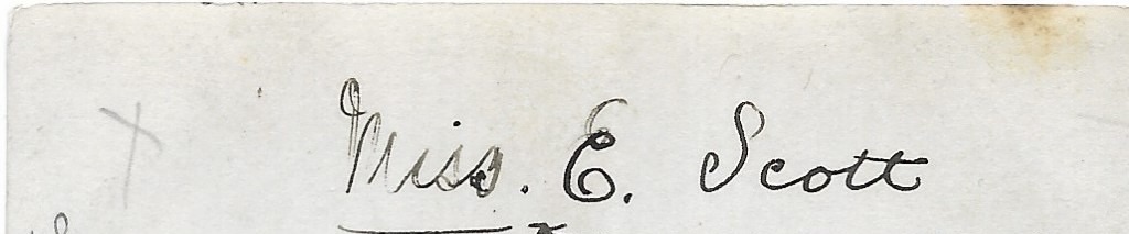 So there were two names. On the back, it says ’Miss E Scott’. Could she have been known as ‘Ettie’ or something similar? So I first looked up Beatrice A Scott on FreeBMD, and there was just the one in the last quarter of 1913, and that was registered in Taunton, Somerset, and she married a chap called Tom Perrott.